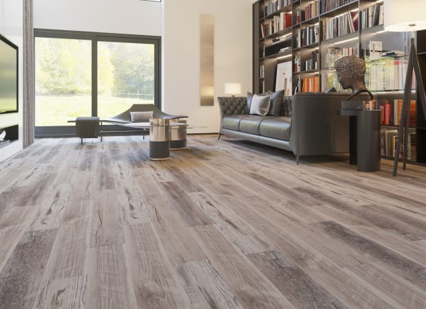The Pembroke collection offers a delightful variety of wide-plank hardwood looks that complement modern and classic styles alike. Choose between smokey greys, earthy tans, and snowy whitesvëall of which feature realistic hardwood textures. Floors in the Pembroke collection boasts high-strength SPC cores and are FloorScore-certified as low VOC.